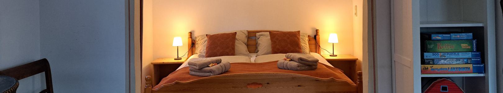 Zimmer Prinz: Einzelbett 0,90 x 2,00 m, Schlafsofa 1,20 x 2,00 m, eigene Dusche mit Waschbecken, Kleiderschrank